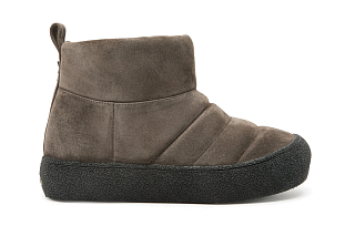Серые шерстяные полусапоги оптимально дополняют женский гардероб в осенне-зимний период. Модель подходит для аутфитов в повседневном или спортивном стиле, кэжуал, спорт-шик. Комбинация ворсистой ткани и накладки на пятке из матовой кожи придает образу изюминку. На заднюю часть подошвы нанесен логотип бренда. Текстильная лента на заднике дополнена объемной фигуркой в виде головы добермана. Обувь гармонично сочетается с базовыми цветами и пастельными оттенками. Благодаря голенищу средней высоты полусапоги подходят к леггинсам, широким или узким брюкам.