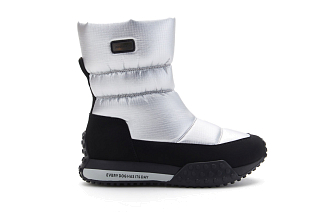 Благодаря широкому голенищу и отсутствию застежки модель удобно надевать. Толстая упругая подошва оказывает амортизирующий эффект. Рельефный протектор предотвращает скольжение в сырую погоду и при быстрой ходьбе.